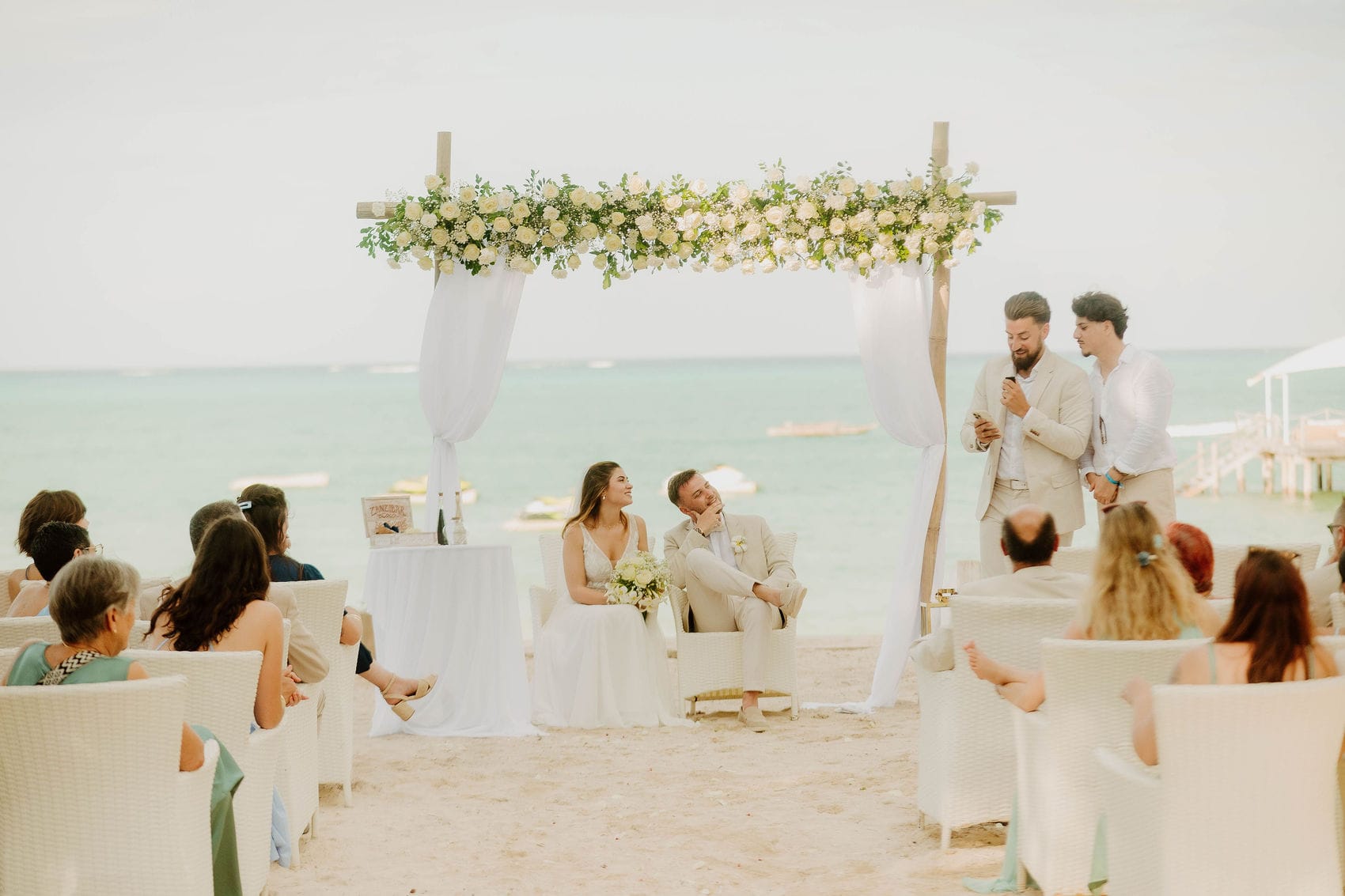 Pour leur wedding destination Zanzibar, Luna et Anthony, un couple français, rêvaient d’un mariage les pieds dans le sable, face à l’océan Indien, entourés de leurs proches. Ils souhaitaient vivre une expérience de voyage autant qu’un mariage, loin du quotidien, dans un cadre dépaysant et lumineux.